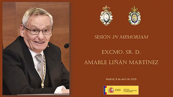 Las Reales Academias de Ciencias e Ingeniería organizan conjuntamente la Sesión In Memoriam del Excmo. Sr. D. Amable Liñan Martínez, que tiene lugar el día 8 de abril de 2026, a las 17:30h., en la Real Academia de Ciencias (c/ Valverde, 22), de acuerdo con el siguiente programa: